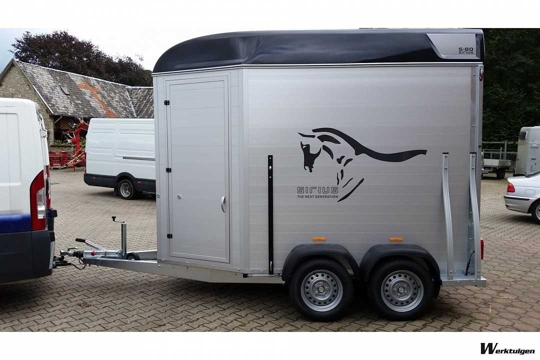 Sirius S-80 er en stilren, romslig hestehenger, som tilbyr høy sikkerhet og komfort for hestene ved transport. S-80 har et homogent komposittgulv som på lik linje med et tregulv absorberer både lyd og vibrasjoner, men som derimot ikke råtner. Innvendig høyde er på hele 250cm. Den innvendige bredden er på 171cm, så her finnes det godt med plass for to store hester.