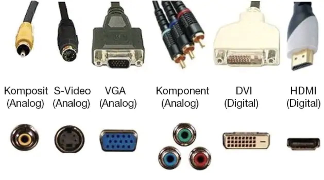 Det finnes mange forskjellige tilkoblinger til projektorer og det må matche med datamaskinen eller enheten som skal spille av og vise filmen eller bildene. Analoge tilkoblinger gir dårligere oppløsning, så du bør velge en digital tilkobling hvis mulig.